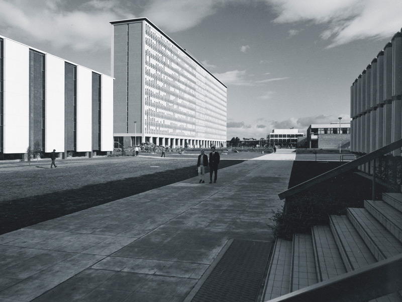 Rod attended Melbourne High School in 1938 and 1939. After the war he graduated from RMIT with an Architectural degree and joined A S & RG Eggleston. In 1954 it became Eggleston, Macdonald & Secomb, and in 1983 Eggleston Macdonald. The practice was responsible for many great buildings of the post-war era, with Macdonald as chief designer. One of our favourites is the landmark Robert Menzies Building at Clayton Campus, Monash, pictured above.